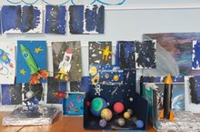 Выставка удалась на славу. Совместные работы детей и родителей получились яркие и оригинальные. Ракеты, космические корабли, неопознанные летающие объекты, планеты солнечной системы, космонавты… - каждая работа уникальна!Поделки были выполнены в разной технике и из различных материалов: картон, цветная бумага, пластилин, фольга, одноразовая посуда и т.д.