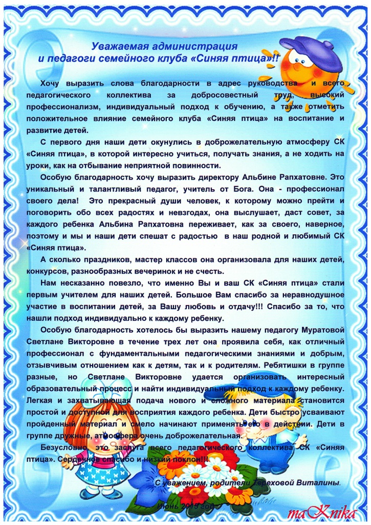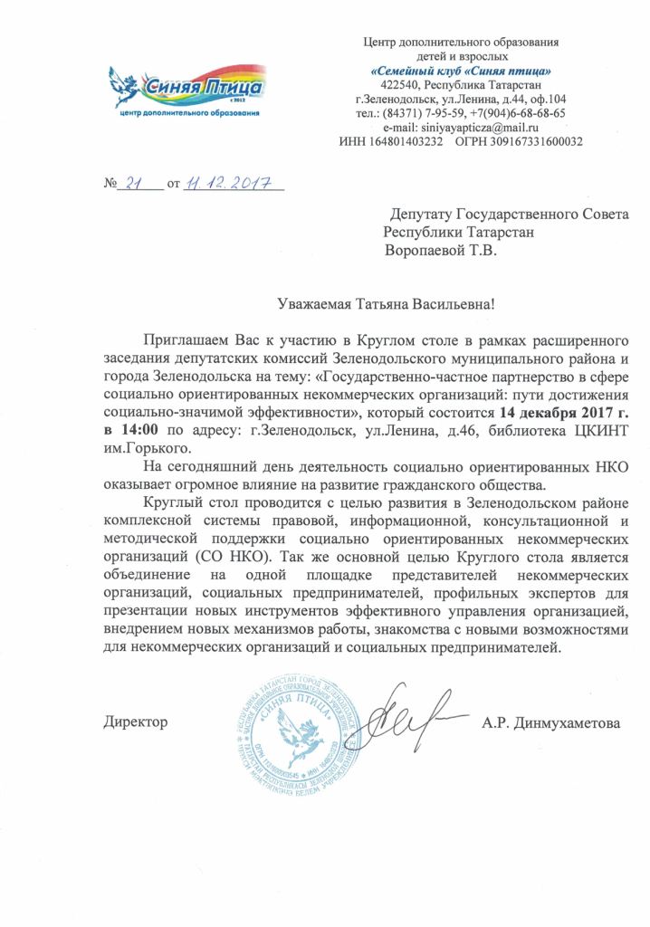 Негосударственная образовательная организация дополнительного образования «Центр дополнительного образования «Синяя птица»