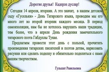 26 апреля исполняется 134 года со дня рождения великого татарского поэта Габдуллы Тукая. Родители с детьми в режиме дистанционного общения с воспитателями групп прочитали сказки Габдуллы Тукая, посмотрели рекомендованные педагогами мультфильмы и нарисовали к ним рисунки, изготовили поделки.