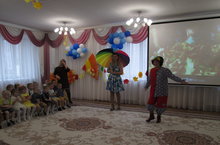 Осеннее развлечение для самых маленьких вызвало радостные улыбки и озорной смех у наших воспитанников, а это лучшая награда для педагогов. Роли Зонтика и Сапожек исполняли свои воспитатели, которые вместе с детьми пели, танцевали и играли.