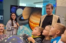 26 октября группа 13 - воспитатель Егорова Наталья Викторовна - вместе с родителями посетили Планетарий КФУ. Там ребята смотрели экспонаты Планетария, с удовольствием вставали на весы, которые покажут твой вес на разных планетах. Ребята разглядывали левитирующий глобус, который парил в воздухе. Затем у них была интерактивная экскурсия и ребята увидели эксперименты по термодинамике и электродинамике. Потом зашли в полнокупольный зал, и после лекции "Межпланетный рейд" посмотрели мультфильм "Мышата и Луна".
