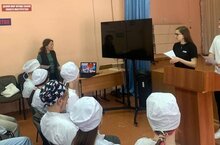 Студенты в ходе беседы рассказали ученикам школы о важности правильного питания, о режиме, кратности, количестве и качественном составе употребляемой пищи, о вреде кальяна, об опасном воздействии наушников и энергетических напитков на организм подростка.