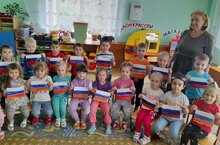 Россия флагы көнен балалар бакчасында тәрбияләнүчеләр 22 августта билгеләп үттеләр. Балалар белделәр, Россия триколоры тарихы гасырлар дәвамында тамырдан чыгып китә-флагның һәр төсе үз символик әһәмияткә ия. Тәрбиячеләр балаларга Россия турында китаплар укыдылар, Россия флагын өйрәнделәр: карадылар һәм рәсем ясадылар, коллектив аппликация ясадылар. Уеннарда балалар башка илләрнең флаглары арасында Россия флагын аерырга һәм табарга өйрәнделәр.