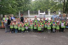 На мероприятии присутствовали начальник дирекции безопасности дорожного движения Шакирова З. В. и старший инспектор по пропоганде БДД ОГИБДД Миронов Д. А. Они были приятно удивлёны, что дети так хорошо знают правила дорожного движения. И в подарок каждому ребёнку вручили познавательную книгу "Безопасная дорога"!!!Бүген безнең балалар бакчасында, шәһәр урамнарында куркынычсыз тәртип булдыру максатыннан, "Юл билгеләре иленә сәяхәт"дигән күңел ачу чарасы узды. Чара дәвамында балалар белән Күңелле Светофор булды, ул уен формасында алар белән юл куркынычсызлыгы турында төп белемнәрне ныгытты, куркыныч булырга, юл йөрү өлешендә сак булырга өйрәтте.