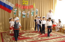 В честь празднования Дня защитников Отечества в детском саду в группах детей старшего дошкольного возраста проходили спортивные развлечения с привлечением пап и дедушек. Дети упражнялись в смекалке, проявляли свою удаль и силу в командных соревнованиях. Подарки, сделанные своими руками, стали лучшей наградой для защитников Отечества.