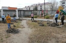 В рамках санитарно-экологического двухмесячника сотрудники детского сада дружно принимаю участие в средниках и субботниках. Слаженная работа коллектива по благоустройству территории - показатель стремления жить и работать в "чистом городе".Санитар-экологик икеайлык кысаларында балалар бакчасы хезмәткәрләре урта һәм өмәләрдә бердәм катнашалар. Коллективның территорияне төзекләндерү буенча җайга салынган эше - "чиста шәһәрдә"яшәргә һәм эшләргә омтылу күрсәткече.
