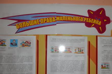 В рамках Международного дня прав человека, с 1 по 8 декабря 2014 года в нашем дошкольном учреждении прошла неделя правовых знаний. В старшей и подготовительной группах проводилась организованная образовательная деятельность на тему "Наши права". На примерах героев сказок воспитатели с детьми обсуждали ситуации, где были нарушены их права. Был организован стенд "Большие права маленького ребенка".
