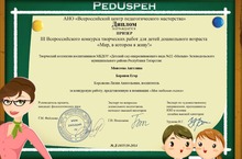 Воспитанники старшей группы Моисеева Ангелина и Баранов Артем стали призерами III Всероссийского конкурса творческих работ для детей дошкольного возраста "Мир, в котором я живу!" в номинации "Моя любимая сказка". Дерябин Данил, воспитанник средней группы, награжден дипломом участника в номинации "Дружная семья". Поздравляем ребят и благодарим родителей за сотрудничество!