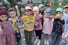 Лето в самом разгаре. А это время года радует нас разными овощами и фруктами, своей сочностью, свежестью, яркостью и полезностью. Огород в детском саду является очень приятным занятием, особенно летом. Овощи, выращенные на огороде с любовью и заботой, особенно вкусные. Одними из сочных, вкусных, полезных из сезонных овощей являются огурцы. Воспитанники детского сада "Дюймовочка" давно уже знают о пользе "волшебных", вкусных овощей и зелени. Вместе с воспитателями ухаживают за растениями с самой посадки семян до получения урожая: поливают, пропалывают. Сегодня наши дети собрали с огорода детского сада первые плоды своего труда. Какой же он ароматный, урожай выращенный своими руками! А во время обеда дошколята попробовали овощи и зелень. Они ели их с удовольствием и гордостью, и пообещали приложить еще больше усилий по уходу за огородом, чтобы получить большой урожай. В результате дети испытали большое удовлетворение, и у них появилась уверенность в своих силах, и убеждённость, что они делают настоящую работу, доставляя радость себе и окружающим людям.