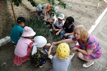 Лето в полном разгаре... Воспитанники детского сада №26 «Дюймовочка» продолжают трудиться на собственном огороде. Они посадили картофель, лук, морковь, огурцы, помидоры и салат; тщательно ухаживают за грядками: окучивают, поливают, борются с сорняками. Сегодня пришло время собирать первый долгожданный урожай - зелёный лук.