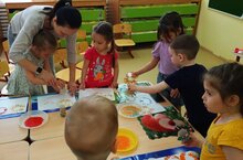 4 мая, в преддверии празднования Дня Победы, в младшей группе №7 воспитатель Садыкова Л.С. провела мастер-класс "Праздничный салют". Дети узнали, что в этот праздник всегда бывает салют - разноцветные искрящиеся огоньки в темном небе. Всем он нравится и конечно, ни один ребенок не откажется его нарисовать. На мастер-классе дети познакомились с нетрадиционной техникой рисования втулкой, с помощью приема "печать", используя гуашь. Работы получились яркие, красочные, праздничные. Ребята очень радовались тому, что у них получилось.
