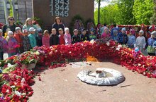 Традиционные патриотические мероприятия проходят в детском саду "Дюймовочка" с целью воспитания у дошколят чувства любви и уважения к истории малой Родины и страны, чувства достоинства и гордости за бесчисленные подвиги советского народа во имя мира! 10 мая педагоги и воспитанники старших и подготовительных групп торжественно возложили цветы к Вечному огню и памятнику Неизвестному Солдату. Минутой молчания почтили всех погибших в 1941—1945 годах и отдавших жизнь за свободу и независимость нашей Родины.