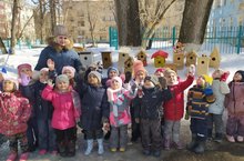 Детский сад "Дюймовочка" стал инициатором и активным участником муниципальногог флэшмоба семейного конкурса «Весёлые скворечники». Веселые песни и танцы, стихи о птицах, выставка скворечников - всё это ждало ребят на территории детского сада. Воспитанники представили скворечники, выполненные руками родителей. Кульминацией праздника было угощение «грачиной кашей». Дети старшей и подготовительной группы отнесли кашу птицам и издалека наблюдали, как они клюют корм, и конечно попробовали её сами.
