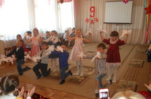 9 мая светлый и радостный праздник. Мы не должны забывать о подвигах наших воинов-защитников, отстоявших мир в жестокой войне. Передавая будущим поколениям традицию памяти и благодарности за мирное и свободное время, в которое мы живём, в детском саду №26 «Дюймовочка» прошла неделя, посвященная Дню Победы. Накануне праздника были организованы выставка рисунков на военные темы, конкурс стихотворений о войне. Ребята старших групп познакомились с историей Великой Отечественной Войны, традициями празднования, с интересом смотрели фотографии. Масштабно и празднично прошло в детском саду мероприятие, посвященное Дню Победы. Дети пришли нарядными, с шарами и цветами. В торжественно украшенный зал участники праздника вошли под песню День Победы. В программу мероприятия вошли сценки, песни танцы и конкурс чтецов. Присутствующие в зале почтили память о погибших минутой молчания