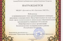 Наш детский сад стал победителем в муниципальном этапе рнспубликанского конкурса рисунков и видеороликов "Буду бдительным на льду и на воде" среди воспитанников дошкольных образовательных организаций и учащихся 1-11 классов общеобразовательных организаций ЗМР РТ