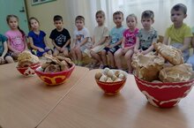 Ребята узнали, как наши предки выращивали хлеб. Узнали, как же хлеб попадает к нам на стол, как много труда вкладывают люди, которые участвуют в производстве хлеба. Воспитатели рассказали, как из маленького колоска получается ароматный батон, какую муку используют пекари. Играли в дидактическую игру "Кто больше назовет хлебобулочных изделий". Дети с удовольствием играли в игры: «Назови ласково», «Скажи, какой бывает хлеб», «Объясни словечко: хлебороб, хлебосольный», «Собери цепочку, как хлеб на стол пришел»; вспомнили правила обращения с хлебом. Дети узнали много нового и интересного о значении хлеба в жизни человека.