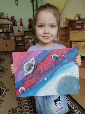 Мир космоса.Номинация "Изобразительное искусство".Бариева Линара,4 года.Безнең балалар бакчасы "Космик калейдоскоп" конкурсында катнаша.