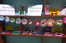 В холле детского сада расположена выставка работ воспитанников, посещающих кружок "Петелька за петелькой", который ведет педагог Ибрагимова Гамбар Рустямовна
