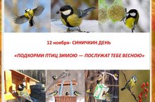 Синичкин день отмечают в России 12 ноября. Прошлое у этого праздника очень древнее, а в настоящее время он носит экологический характер и проходит под знаком заботы о птицах в зимний период. Именно в эти дни во многих городах появляются синицы. Кстати, синицы не улетают на лето в теплые края, как считают многие. Летом эти птицы живут в лесах и выводят там птенцов. В город они переселяются с наступлением холодов, потому что рядом с людьми им проще прокормиться. В детском саду провели беседы о важности охраны и подкормки птиц зимой. Началась экологическая акция «Покормите птиц зимой!»
