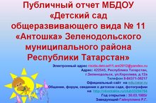 | Короткое название: | МБДОУ "Детский сад общеразвивающего вида №11 "Антошка" ЗМР РТ |