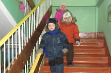 Учебная тренировка 12.02.2013 Сегодня в детском саду неожиданно раздался сигнал тревоги. Весь коллектив согласно приказу заняли свои места в группах, помогая одевать и выводить детей из здания. К счастью это была учебная эвакуация, но все действовали слаженно.