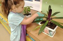 Полив и уход за комнатными растениями это одна из ежедневных работ дежурных в группе. Во время дежурства ребята учатся поливать растения из мелкой лейки, опрыскивать из пульверизатора, протирать листья — влажной тряпочкой, могут самостоятельно определить, нуждается растение в поливе или рыхлении. Такая форма работы позволяет обогащать кругозор детей, они получают представление о богатстве мира природы. У ребят есть возможность наглядно увидеть закономерности, существующие в мире растений, связи, зависимости организма от окружающей среды. Комнатные растения являются частичкой живой природы и постоянными объектами уголков природы, т. е. тем дидактическим материалом, на котором решаются задачи умственного, нравственного, эстетического и трудового воспитания. -