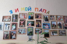 В холле детского сада оформлена выставка фотографий " Я и мой папа". Выставка приурочена ко Дню Защитника отечества. Дети очень гордятся своими папами и с удовольствием рассказывают о них.