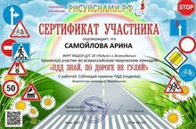С. Арина приняла участие во Всероссийском творческом конкурсе "ПДД знай, по дороге не гуляй".