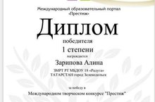 Зарипова Алина приняла участие в Международном конкурсе "Престиж!"