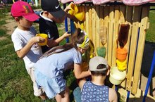 Лето – страна вечного детства, в которой даже взрослые иногда чувствуют себя немножко детьми. Жизнь детей в нашем саду в летний период наполнена праздниками, развлечениями, играми, смехом и весельем. Для организации эмоционально насыщенной жизни, всестороннего развития детей созданы комфортные условия, благодаря которым дети получают незабываемые впечатления, радость от общения со сверстниками и новых открытий.Җәй-мәңгелек балачак иле, анда хәтта олылар да үзләрен бераз бала кебек хис итәләр. Җәйге чорда бакчабызда балалар тормышы бәйрәмнәр, күңел ачулар, уеннар, көлү һәм күңел ачулар белән тулы. Эмоциональ яктан бай тормышны оештыру, балаларны һәрьяклап үстерү өчен уңайлы шартлар тудырылган, шуның аркасында балалар онытылмаслык тәэсирләр, яшьтәшләре белән аралашудан шатлык һәм яңа ачышлар ала.