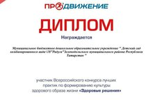 Детский сад принял участие во Всероссийском конкурсе "Здоровое решение". Конкурс направлен на выявление действующих практик работы организаций Профсоюза по реализации здоровьесберегающих, физкультурно-оздоровительных и спортивных инициатив, и программ для работников системы образования.