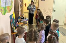 В детском саду прошел тематический день, посвящённый Дню космонавтики. Воспитанники групп в течение дня знакомились с информацией о первом полете человека в космос и о космосе вообще.