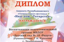 Воспитанники детского сада "Радуга" стали лауреатами республиканского фестиваля "Наш дом - Татарстан". Поздравляем!!!