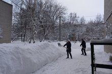 После обильного снегопада все сотрудники детского сада дружно расчищали территорию садика, а родители помогали в расчистке прогулочных участков.