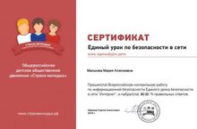 В соответствии с решениями парламентских слушаний «Актуальные вопросы обеспечения безопасности и развития детей в информационном пространстве» и планом мероприятий по реализации Концепции информационной безопасности детей на 2018-2020 годы, утверждённого приказом Минкомсвязи России №88 от 27.02.2018, в образовательных и воспитательных организациях Российской Федерации осенью 2018 года проходит Единый урок безопасности в сети «Интернет». Единый урок представляет собой цикл детских мероприятий, направленных на повышение уровня информационной безопасности, и направлен обеспечение внимания родительской и педагогической общественности к проблеме обеспечения безопасности и развития детей в информационном пространстве. Именно формирование информационной и цифровой грамотности является одним из важнейших факторов не только в сохранении информационного суверенитета нашей страны и формирования всех сфер информационного общества, но и обеспечения развития цифровой экономики. Единый урок, включая его мероприятия и информационно-методический контент по его проведению, ориентирован на возраст детей и подростков с 5 до 19 лет, что позволяет организовать обучение информационной безопасности и цифровой грамотности детей в старших группах детского сада до выпускников учреждений среднего профессионального образования.В нашем саду в рамках Единого урока безопасности в сети «Интернет» дети знакомятся с правилами пользования интернетом, а родители получают памятки по информационной безопасности детей. -