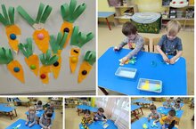 Аппликация — одно из любимых занятий детей в детском саду. Этот продуктивный вид деятельности тесно связан с познанием окружающего мира и играет большую роль в умственном воспитании ребенка. Аппликация особенно уместна для занятий с детьми раннего возраста, поскольку их деятельность в это время имеет предметный характер. Дети учатся составлять композицию из нескольких предметов, свободно располагая их на листе, предварительно выкладывая готовые детали (в определённой последовательности); формировать целостную картину мира. Сегодня ребята 1 группы "Солнечные зайчики" помогали Зайчику, они накормили его вкусной, сочной морковью. Такая деятельность всегда вызывает у детей много положительных эмоций и приучает их помогать ближнему.