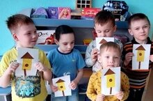 В рамках Эковесны, недели помощи пернатым, дети группы 6 сделали аппликацию "Скворечники". А сначала побеседовали о перелетных птицах, о том, как их встречают люди после долгой холодной, зимы. Рассмотрели скворечник, его части, затем выполнили работу, как смогли.