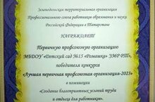 Сегодня состоялся VПленум Зеленодольской территориальной организации Профсоюза работников народного образования и науки РФ в Татарстане, на котором подводились итоги выполнения территориального Соглашения в 2023 году, было подписано новое Соглашение, и Первичной профсоюзной организации нашего детского сада была вручена Грамота за победу в конкурсе "Лучшая первичная профсоюзная организация-2023" в номинации "Создание благоприятных условий труда и отдыха для работников".