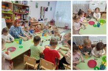 Бүген 10 төркемдәге сабыйлар уч төбе белән әтәчне ясап, нокталар белән әтәчкә борчак ясап йөриләр.