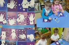 Символ 2024 года - Зелёный дракон. Дети 3 группы "Умные совята" делали аппликацию из бумажных ладошек-такого замечательного дракона.