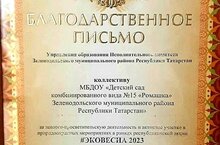 Безнең бакча коллективы мәгариф идарәсеннән экологик-агарту эшчәнлеге һәм #Эковесна 2023 республика акциясе кысаларында Табигатьне саклау чараларында актив катнашуы өчен рәхмәт хатлары алды