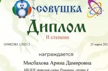 21-27 март көннәрендә "Пчелки" әзерлек төркеме тәрбияләнүчеләре "Совушка" сайтында "Кырым тыюлыклары" халыкара викторинасында катнаштылар һәм яхшы нәтиҗәләр күрсәттеләр.