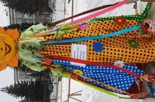 По сложившейся традиции, мы принимали участие в муниципальном конкурсе соломенных чучел “Веселая Масленица”. Ныныче наша Масленица была поликультурной. Вокруг нее водили хоровод деревянные расписные фигурки детей разных национальностей: девочки – татарочка, казашка, японка, цыганочка, мальчики – русский, казах, мексиканец, индус, индеец, папуас.