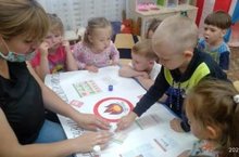 Дети группы №5 «Подсолнушки», в рамках празднования 100-летия ТАССР, рассматривали кукол в татарских костюмах и подбирали национальный костюм в дидактической игре.