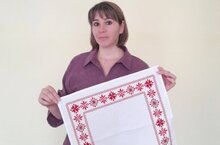 Назилә Мәҗит кызы "милли көнкүреш әйберләре" номинациясендә рус милли орнаменты белән салфетка тәкъдим итте.