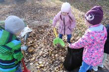 Балалар бакчасында табигатьтә хезмәткә кызыксыну тәрбияләнә. Көзен балаларны хезмәттә катнашырга – яфрак җыештырырга, чәчәк орлыгы җыярга җәлеп итәләр. Йөрешләрдә балалар көзге табигатьнең матурлыгына, төрле төстәге яфракларга гына түгел, көз турында шигырьләр укыдылар, урам себерүченең хезмәтен дә күзәттеләр. Яфраклар шулкадәр күп иде ки, балалар тәрбиячеләр белән урам себерүчегә ярдәм итәргә һәм безнең балалар бакчасын матурайтырга булдылар.