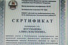Беренче квалификация категориясе тәрбиячесе Ногманова А.и."мәктәпкәчә яшьтәге балаларда балалар арасында имин үз-үзеңне тоту күнекмәләрен формалаштыру"темасына республика семинар-практикумында катнашты.Педагог сертификат алды.Алина Илгиз Кызын Котлыйбыз!