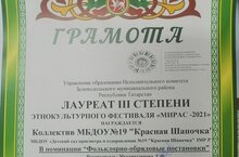 Балалар бакчасы "Мирас-2021" этнокультура фестивалендә катнашты һәм 3 дәрәҗә лауреат булды.Котлыйбыз!!!