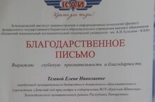 "Казан милли тикшеренү техник университеты"Уби ФГБОУ УВБО инновацион эшчәнлектә партнерлык һәм хезмәттәшлек өчен мәктәпкәчә белем бирү учреждениесе коллективына Рәхмәт хаты.А.Н. Туполев-КАИ"ААҖ