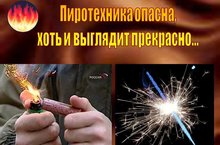В период новогодних праздничных дней увеличивается количество несчастных случаев, и в первую очередь пожаров. Только строгое соблюдение требований правил пожарной безопасности при организации и проведении праздничных мероприятий поможет избежать травм и увечий.В жилом помещении запрещается:- применять свечи и хлопушки, устраивать фейерверки и другие световые пожароопасные эффекты, которые могут привести к пожару;- украшать елку целлулоидными игрушками, а также марлей и ватой- загромождать выход различными вещами.Основные меры безопасности при обращении с пиротехникой.Внимание: в нашей стране продажа пиротехнических изделий разрешена лицам не моложе 15 лет.Использование самодельных пиротехнических изделий запрещено. Более того, приобретая пиротехнические изделия, необходимо проверить наличие сертификата соответствия, наличие инструкции на русском языке, срок годности. Также нужно иметь в виду, что нельзя использовать изделия, имеющие дефекты или повреждения корпуса и фитиля.Как правильно запустить пиротехнику:1) Убедитесь в том, что в радиусе опасной зоны нет домов (лучше в 30 метрах от жилья), деревьев, линий электропередачи – словом, ничего такого, во что может ударить залп и изменить направление;2) при запуске НИКОГДА не наклоняйтесь над коробкой;3) не запускайте изделия при сильном ветре;4) не направляйте ракеты и фейерверки на людей!В случае пожара или появления дыма, немедленно позвоните по телефону «101» , указав точный адрес. До прибытия пожарной охраны примите меры к эвакуации людей и имущества, приступите к тушению имеющимися средствами (водой, песком, огнетушителем.) Огонь нужно накрывать, а не сбивать одеялом или другой плотной тканью. В случае загорания изоляции электропроводов необходимо сначала отключить сеть, а затем приступить к тушению. -